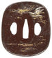 大振りの撫角形はほんの少し下部が張り、全面に槌目を施して打ち返し耳となる。江戸後期の東龍斎派によくみられる手法。表側には月光に輝く雲間を鳴きながら飛ぶ時鳥。夏を告げるこの鳥の初音を聞こうと古人は一晩中起きていたという。何とも優雅なことだ。とはいえ、本作の時鳥は、喉も裂けよ、とばかりの必死の形相にも見える。「不如帰去」と血を吐くまで鳴いたという杜宇の伝説を想起させる。裏面は銀象嵌の大きな朧月。初夏の花、卯の花や橘と共に歌に詠まれる時鳥。橘の香る月夜の情景を切り取った作。