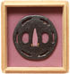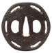 柳生鐔を見るような、小振りに引き締まって鉄地に力強さが漲る作。鍛えた鎚の痕跡が明瞭に残され、錆色黒く渋い光沢があり、鏨で彫り込んだような透かしの切り口も迫力がある。耳には筋状の合せ鍛えによる働きも窺える。図柄は、初代より受け継がれている簡潔な車透。銘に桜文を刻すのは寛文から元禄を活躍期とする三代目山吉兵(やまきちべい)で、桜の刻印は桜天神辺りに居住した(注)ことからと伝える。
