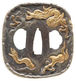 鍛えの良い鉄地を撫角形に仕立て、抑揚変化に富んだ鋤き残し耳には真砂を思わせる金布目象嵌が煌めく。彼方の一点を見据え、雲をかき分け、天へ昇る龍。その体には厚く金が摺付象嵌されている。鐔の耳にも胴体の一部が見え、手の込んだ構成となっている。江戸四谷に居を構え、肥後細川家の抱え工となった熊谷家の作を江戸肥後、または四谷肥後と呼称する。甚吾の彫技を時代に即して進化させ、巧みな彫りに布目象嵌と摺付象嵌を多用した華やかな作風が当時の武士に好まれた。