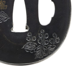 江戸文人画で知られる谷文晁(たにぶんちょう)に絵画を学んだと伝える染谷知信(そめやとものぶ)(江戸後期文政~弘化)の、まさに山水図の境域を鐔面にて試みた、しかも独特の鏨使いによる妙趣が示された作品。