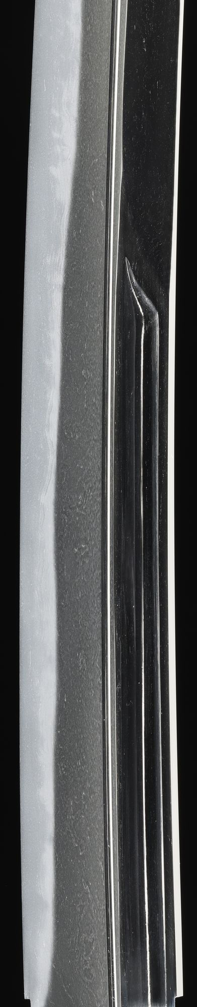 反り高く鋒が延び、鎬筋沿いに刻された細樋で姿の引き締まったこの刀は、池田恒興所持の刀に酷似した一刀。研ぎ減りなく健全な体躯は身幅が頗る広く鎬幅も広く、腰元から上の鎬地が削がれながらも刃肉が充分に付いて手持ちが重く、総体に鎬筋が張って刃の通り抜けが優れた、刃味の良さと威力を感じさせる造り込み。